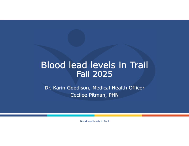 Trail, BC – The 2025 blood lead testing clinic results for children aged six months to 36 months in Trail and Rivervale show an average blood lead level of 2.3 micrograms per decilitre, similar to recent years. Year to year variability in blood lead levels is influenced by lead levels in community air, weather conditions, the group of children tested and where they live. Read full media release with FAQ attachment via the link below.
